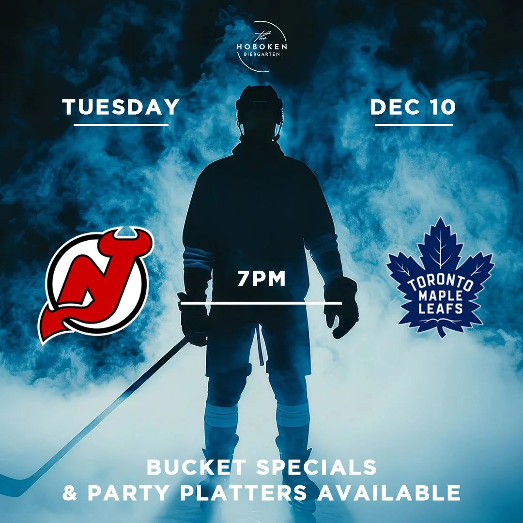 Join us for the NHL matchup between the New Jersey Devils and Toronto Maple Leads on our large screen TVs and projector screens in the main hall, wintergarten, and outdoor patio! Enjoy our bucket specials and party platters while you cheer on your team!