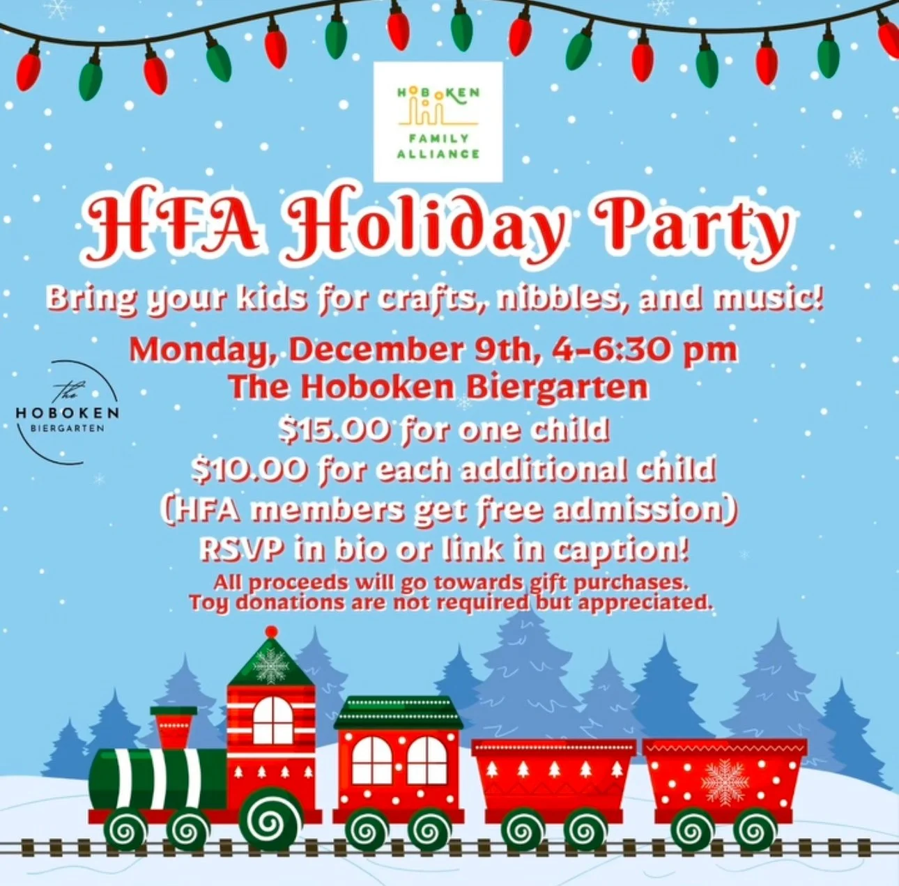 Bring your kids to the Hoboken Biergarten for an afternoon of creativity and fun! Join us on Monday, December 9th, from 4:00 PM to 6:30 PM for crafts, delicious snacks, and lively music. It's the perfect way to kick off the holiday season with family and friends!